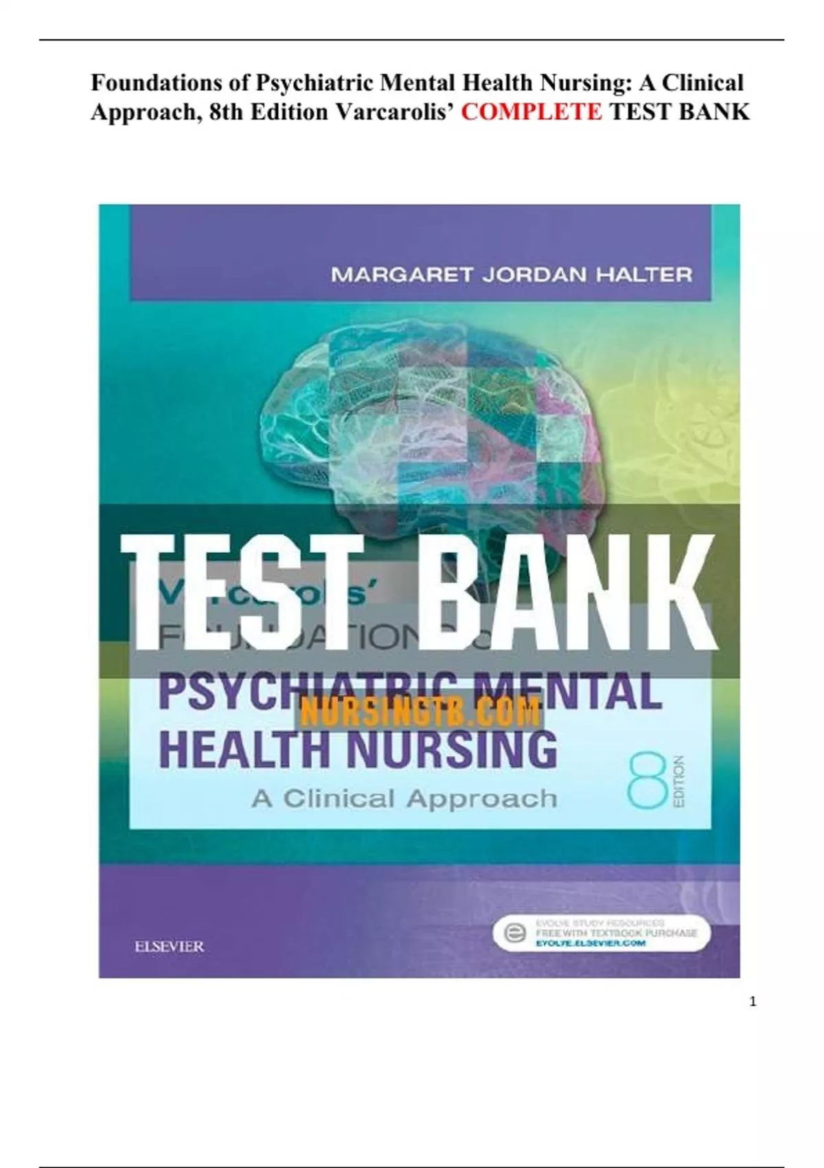 This document contains the complete test bank for Foundations of Psychiatric Mental Health Nursing: A Clinical Approach (8th Edition) by Varcarolis. It includes hundreds of multiple-choice questions covering all chapters of the textbook, with correct answers clearly indicated. Ideal for exam preparation, NCLEX-style practice, and in-depth review of psychiatric nursing concepts.