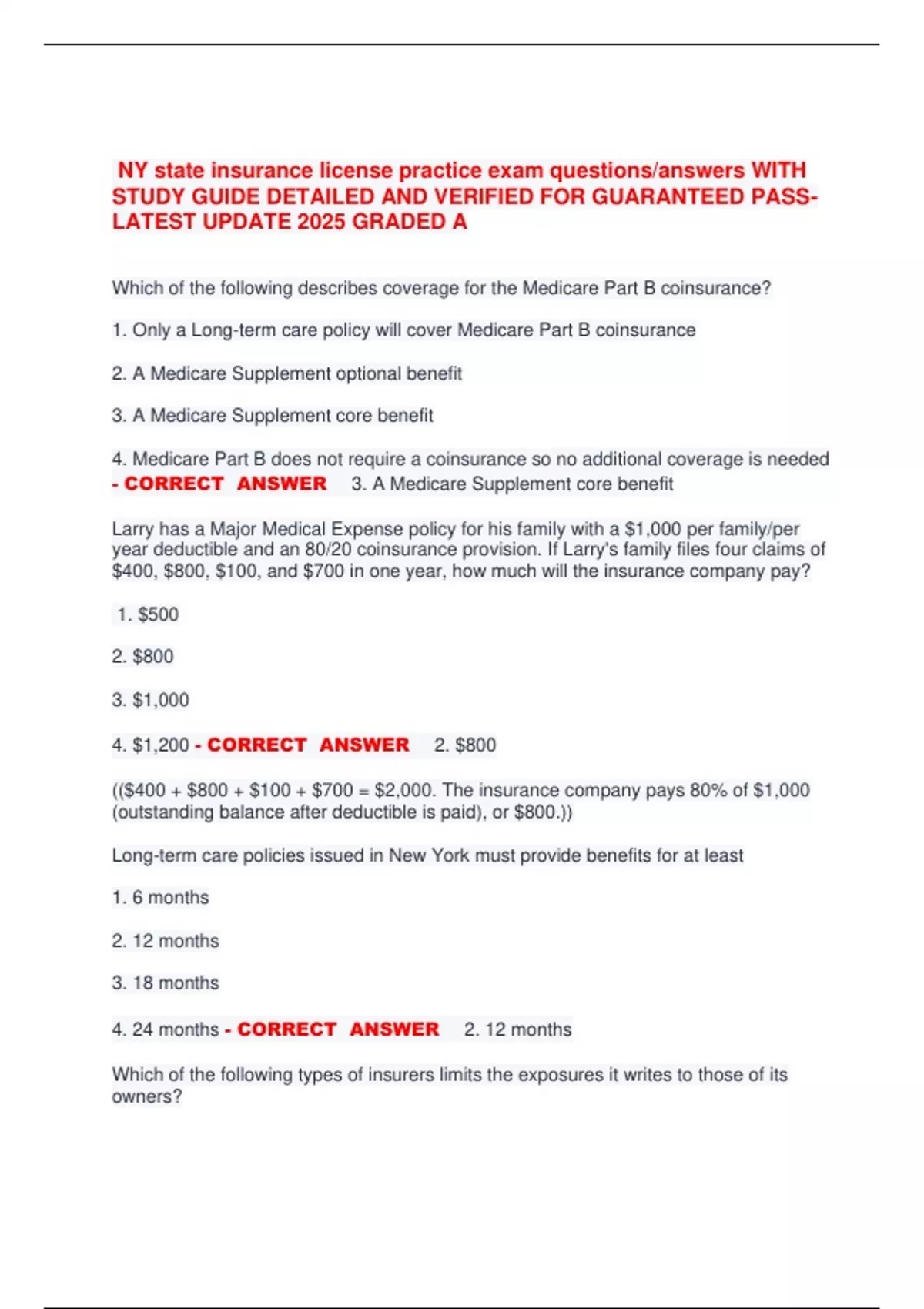1. Only a Long-term care policy will cover Medicare Part B coinsurance