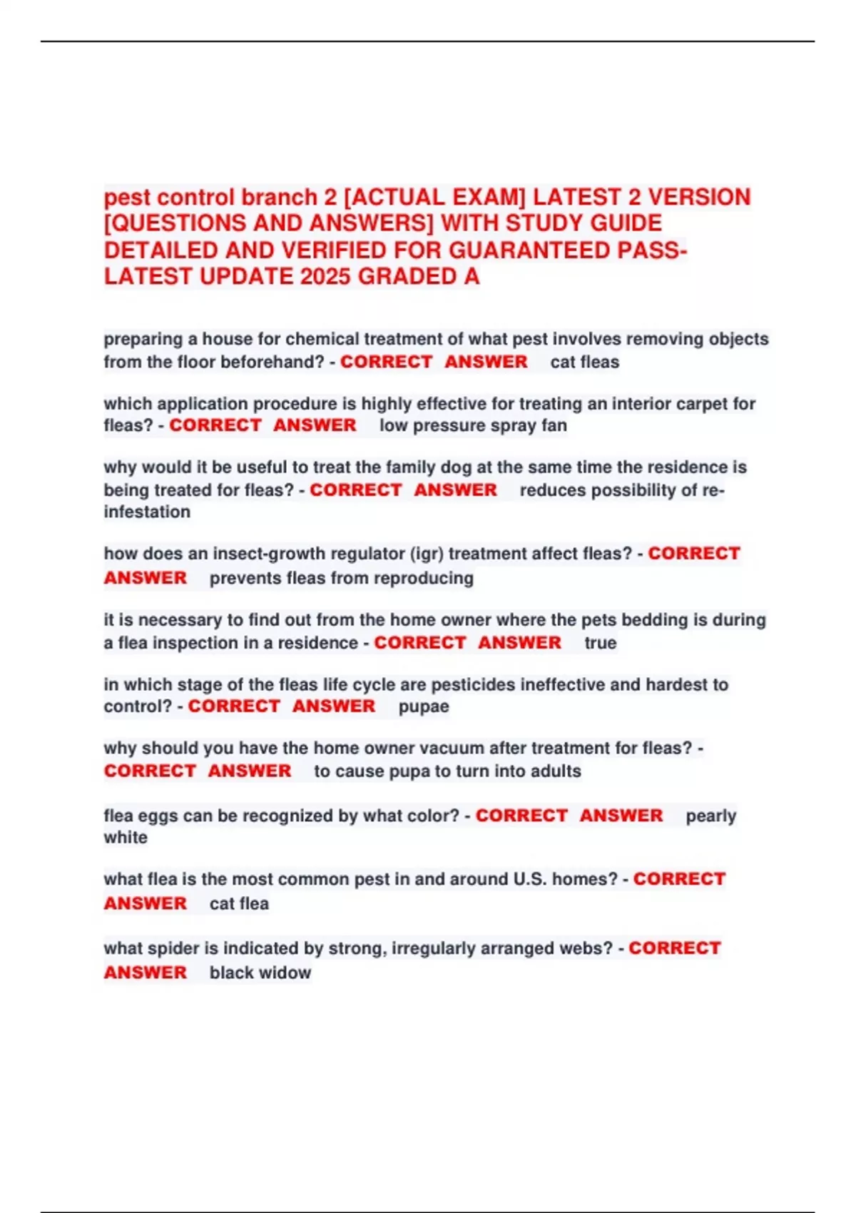 from the floor beforehand? - CORRECT ANSWER cat fleas