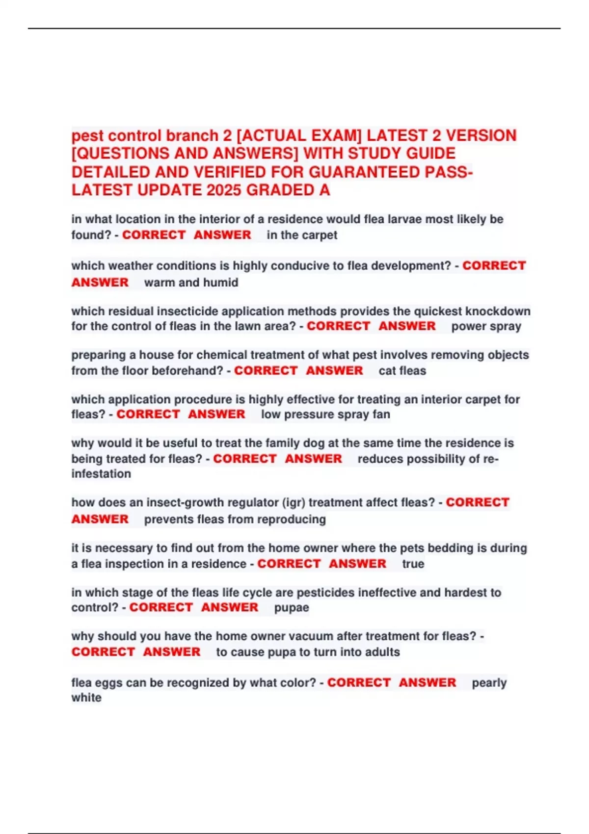 pest control branch 2 [ACTUAL EXAM] LATEST 2 VERSION [QUESTIONS AND ANSWERS] WITH STUDY GUIDE DETAILED AND VERIFIED FOR GUARANTEED PASS- LATEST UPDATE 2025 GRADED A