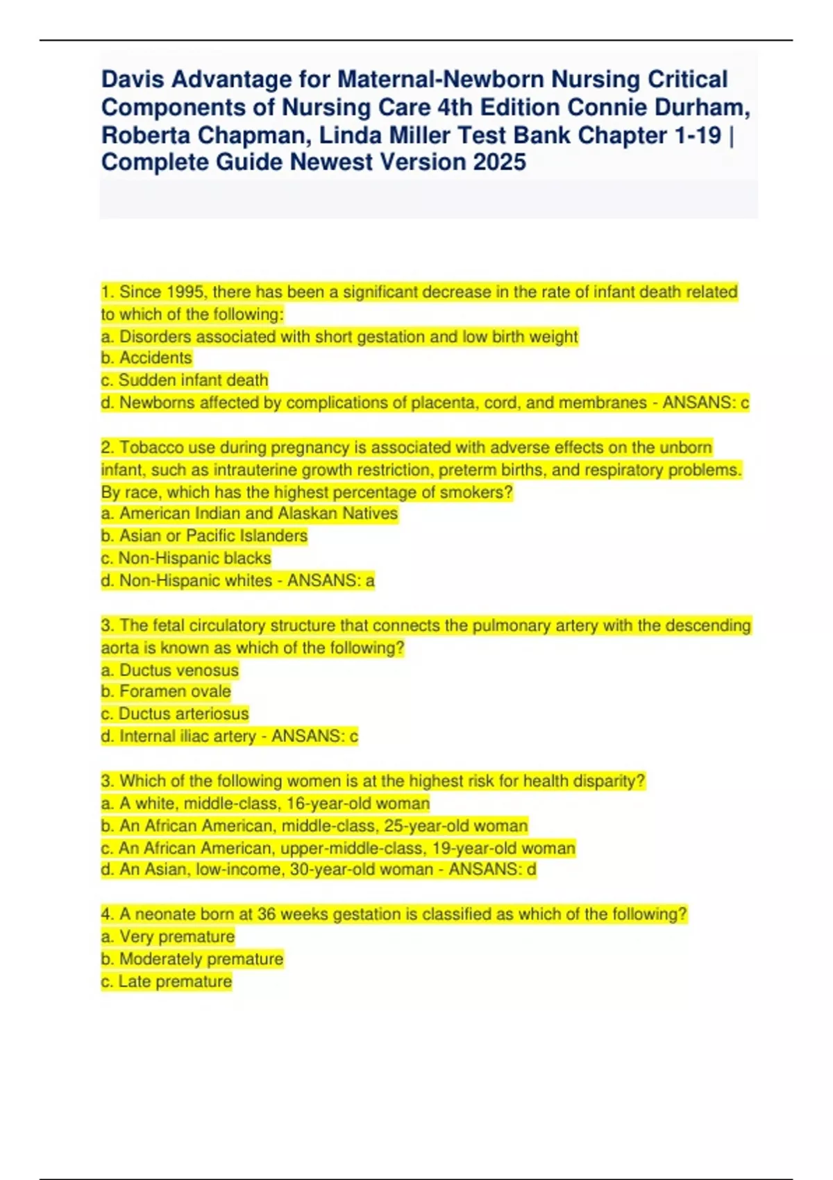 d. Infants born to teen mothers are at higher risk for health problems. - ANSANS: a, b, d