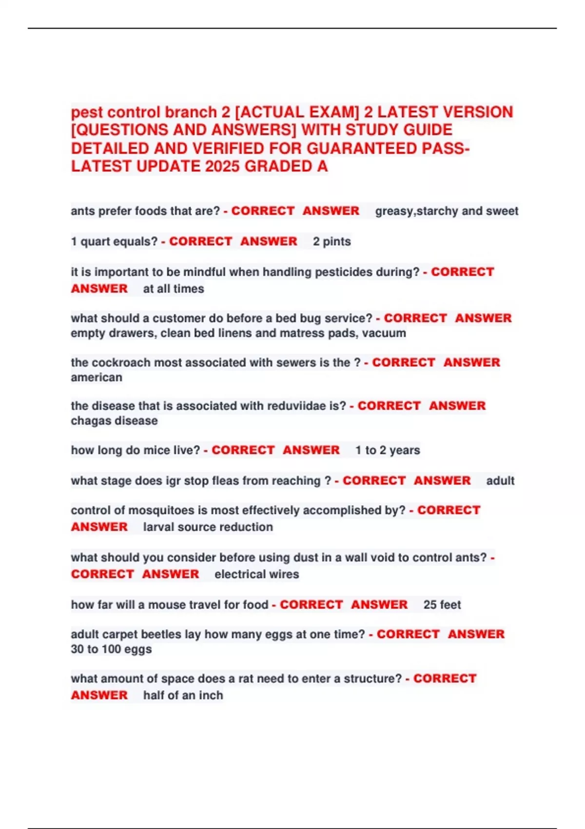 infestation? - CORRECT ANSWER 90
