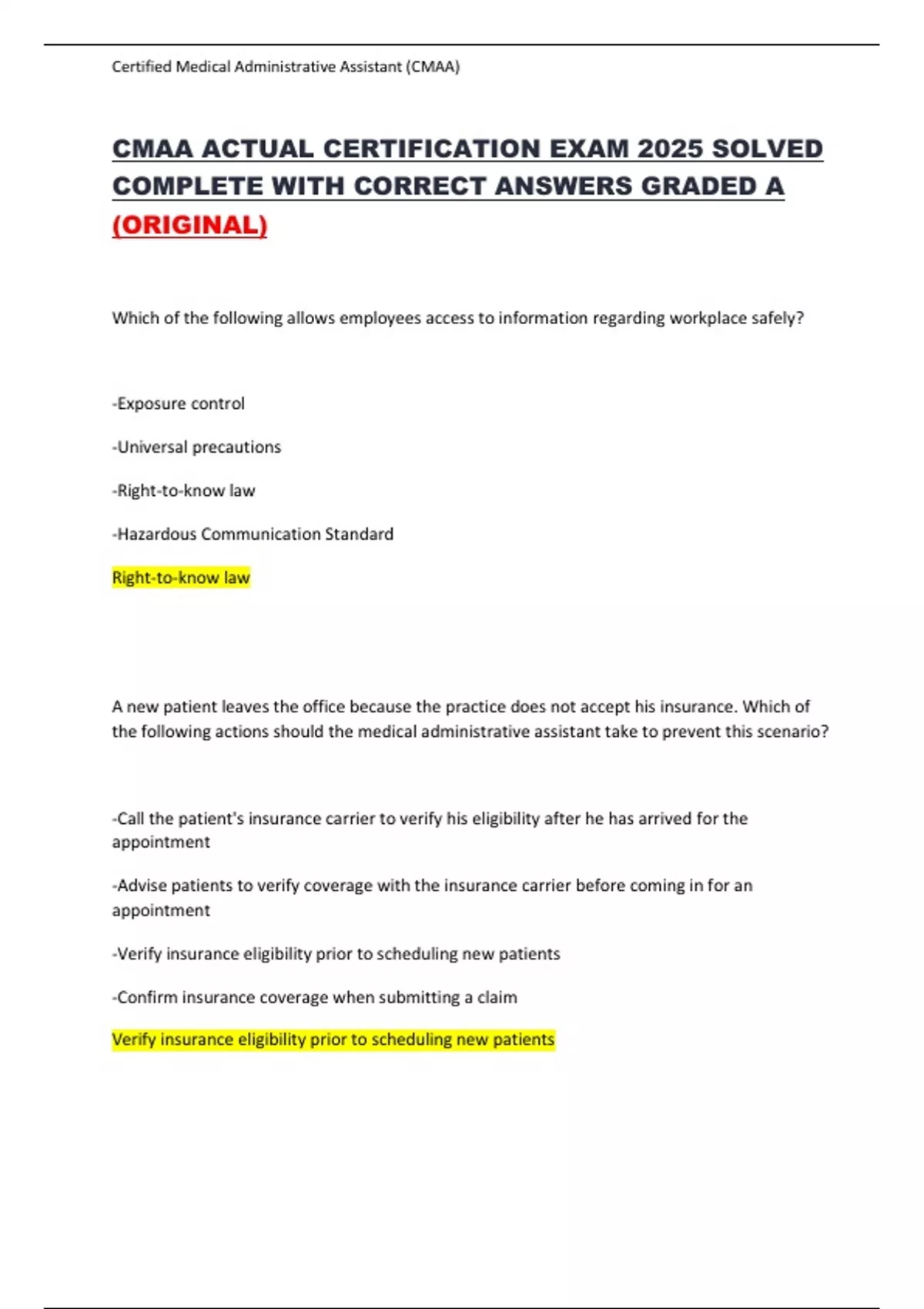 CMAA ACTUAL CERTIFICATION EXAM 2025 SOLVED