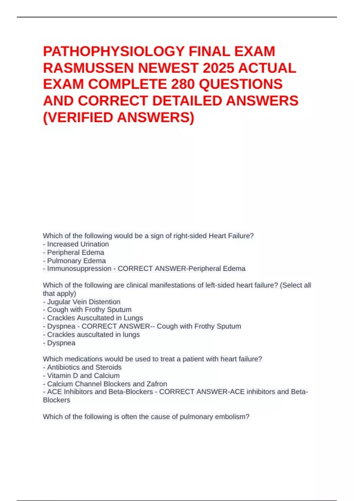 PATHOPHYSIOLOGY FINAL EXAM