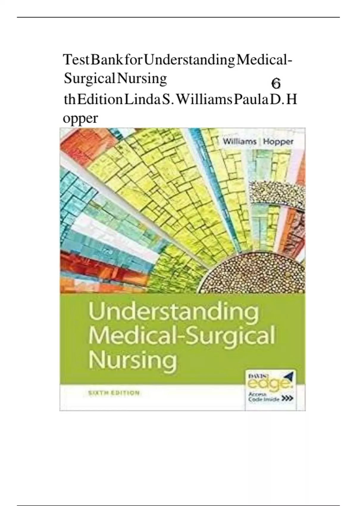 TEST BANK FOR Understanding Medical-Surgical Nursing 6th Edition by Linda S. Williams & Paula D. Hopper , ISBN: 9780803668980 |COMPLETE STUDY GUIDE| GRADE A+/ All chapters 1-57 Accurately Covered