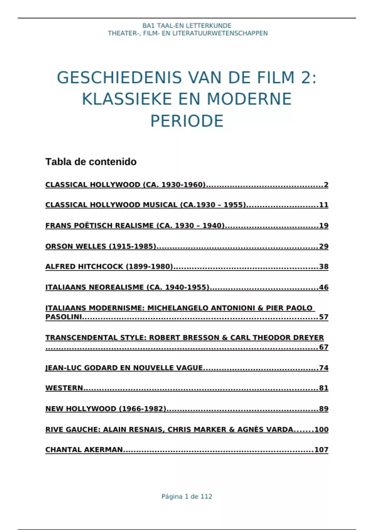 Uitgebreid overzicht van de videocolleges van het vak Filmgeschiedenis 2. Document bevat typefouten! Lage prijs want tijd = geld, en dit telt bijna niet meer als samenvatting. :)