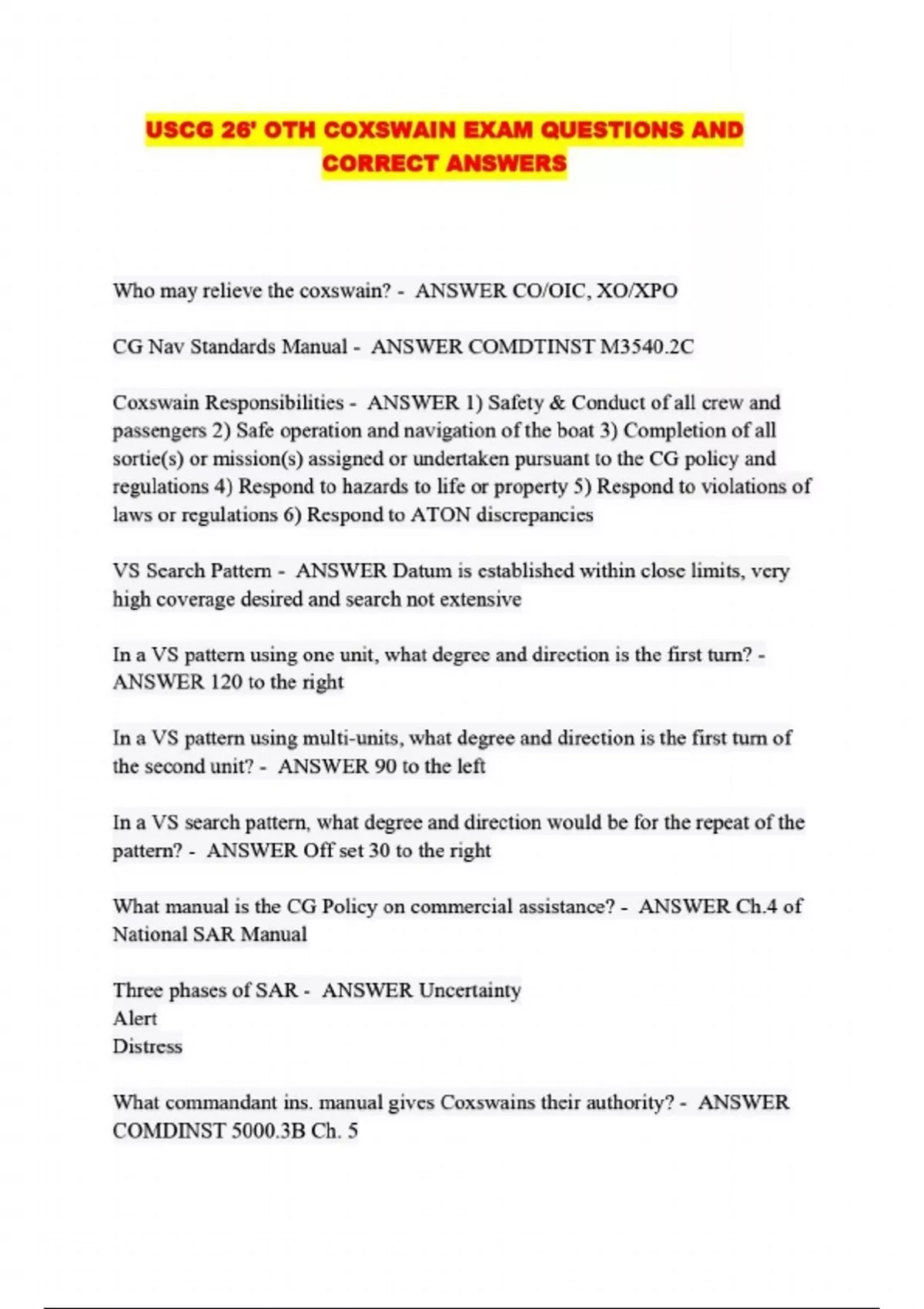 USCG 26' OTH COXSWAIN EXAM QUESTIONS AND CORRECT ANSWERS...