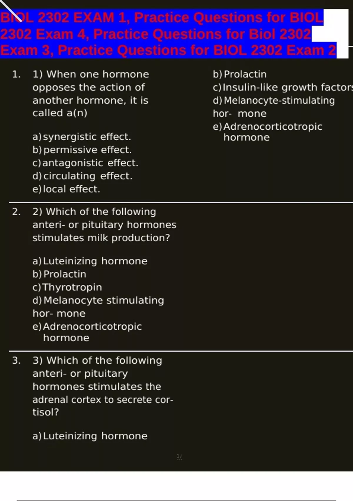 1. 1) When one hormone b) Prolactin