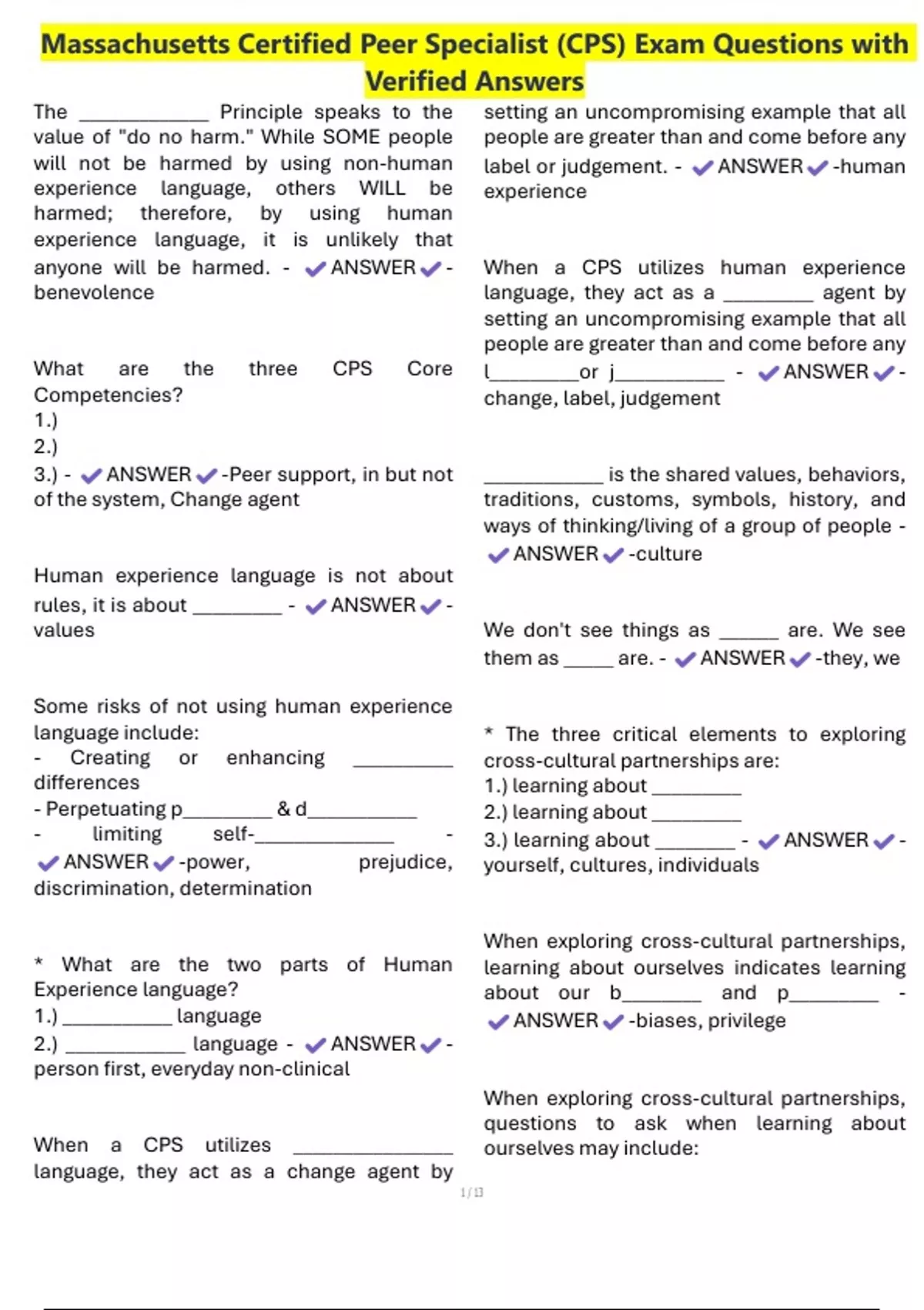 , Massachusetts Certified Peer Specialist (CPS) Exam Questions with