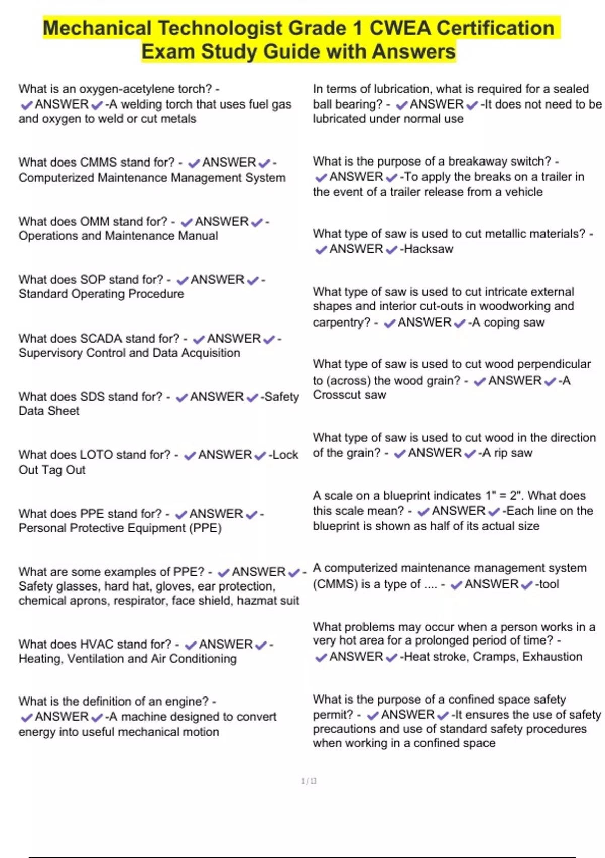 What does CMMS stand for? - ANSWER - What is the purpose of a breakaway switch? -