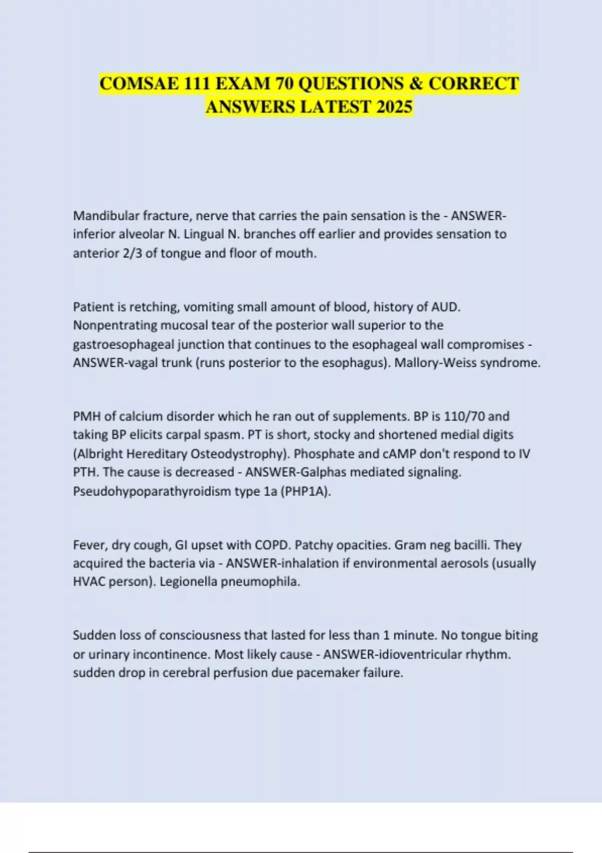 COMSAE 111 EXAM 70 QUESTIONS & CORRECT ANSWERS LATEST 2025