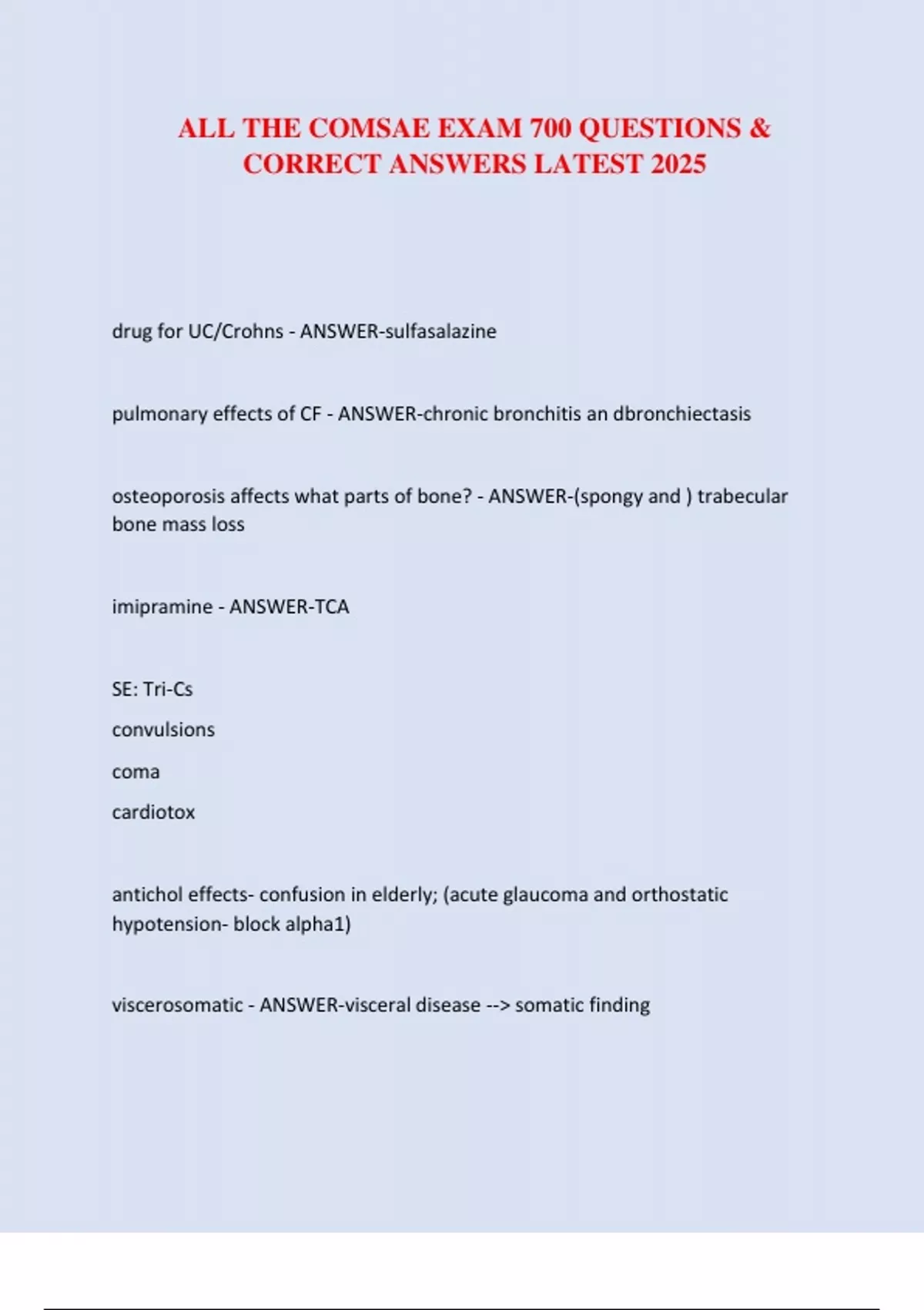 ALL THE COMSAE EXAM 700 QUESTIONS & CORRECT ANSWERS LATEST 2025