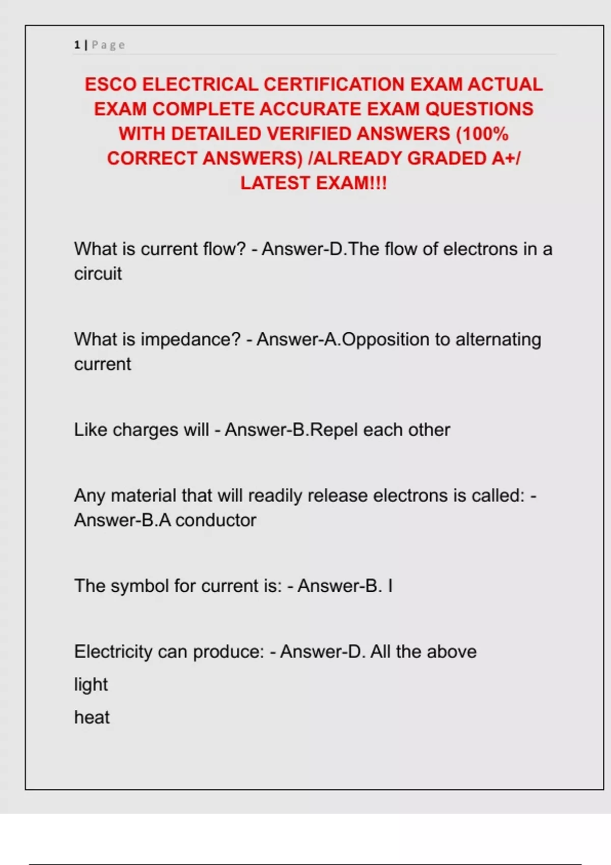 ESCO ELECTRICAL CERTIFICATION EXAM ACTUAL