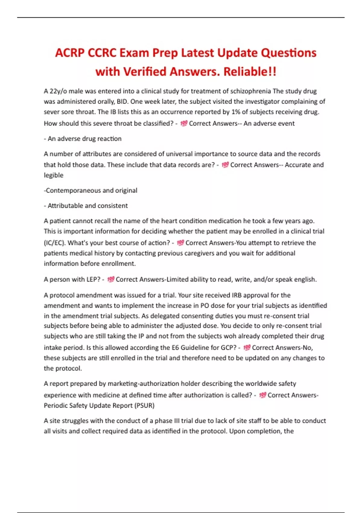 Correct Answers-An unexpected, serious adverse event