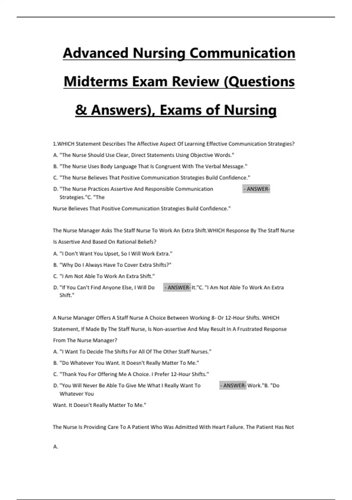 Advanced Nursing Communication Midterms Exam Review, Nursing Questions
