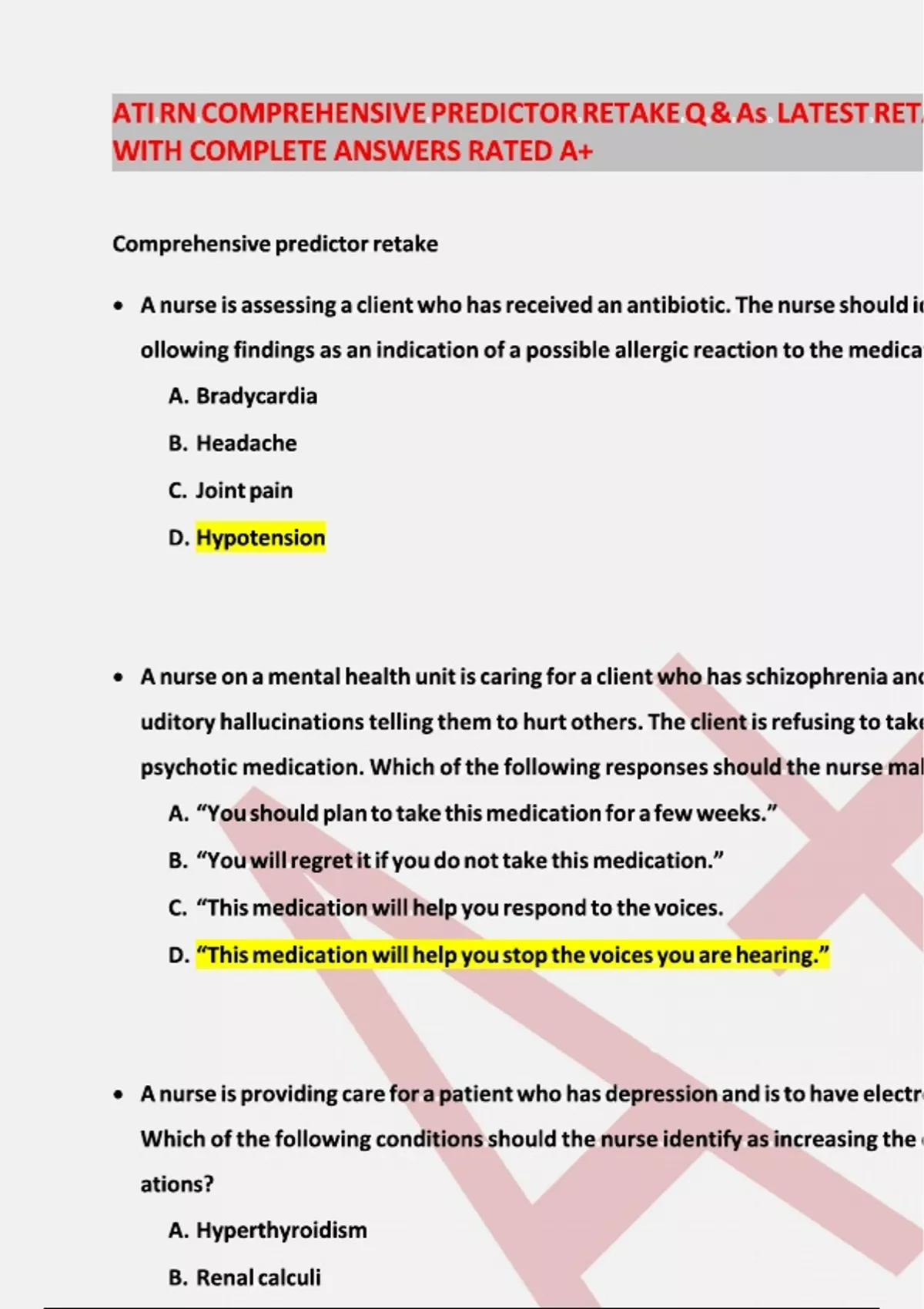ATI RN COMPREHENSIVE PREDICTOR RETAKE QUESTIONS & ANSWERS LATEST RETAKE EXAM