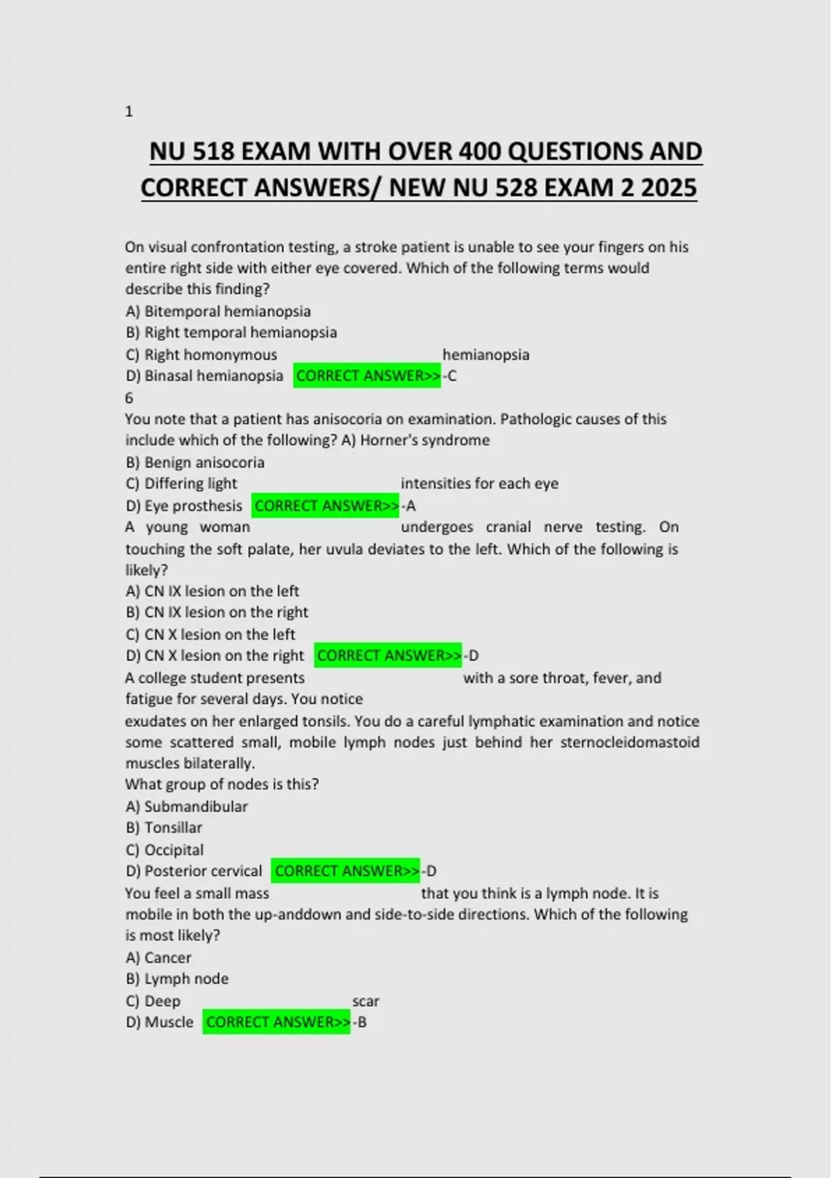 NU 518 EXAM WITH OVER 400 QUESTIONS AND