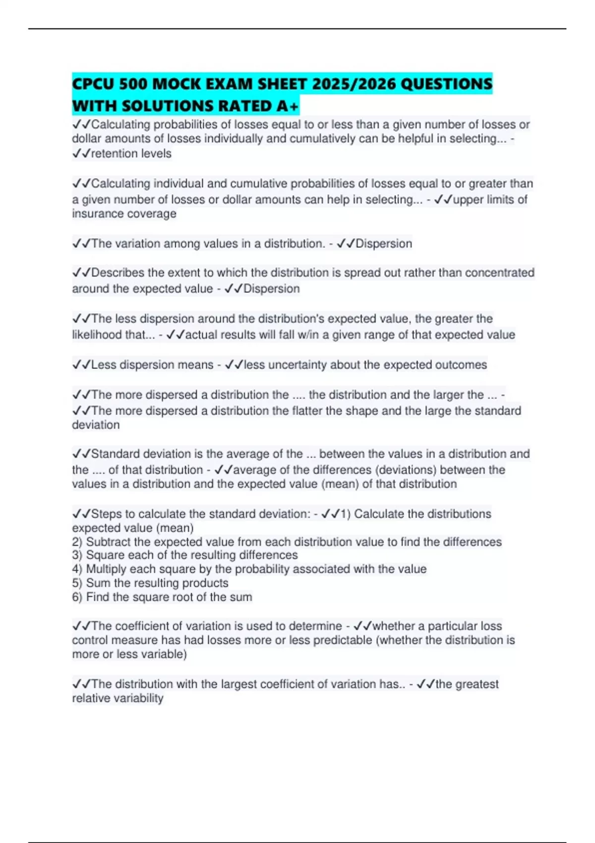 CPCU 500 MOCK EXAM SHEET 2025/2026 QUESTIONS WITH SOLUTIONS RATED A+