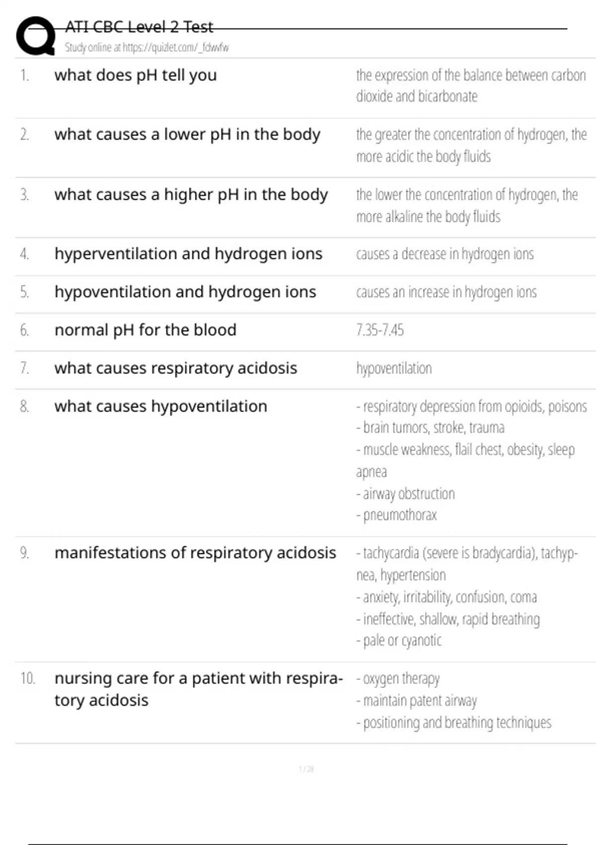 7. what causes respiratory acidosis hypoventilation