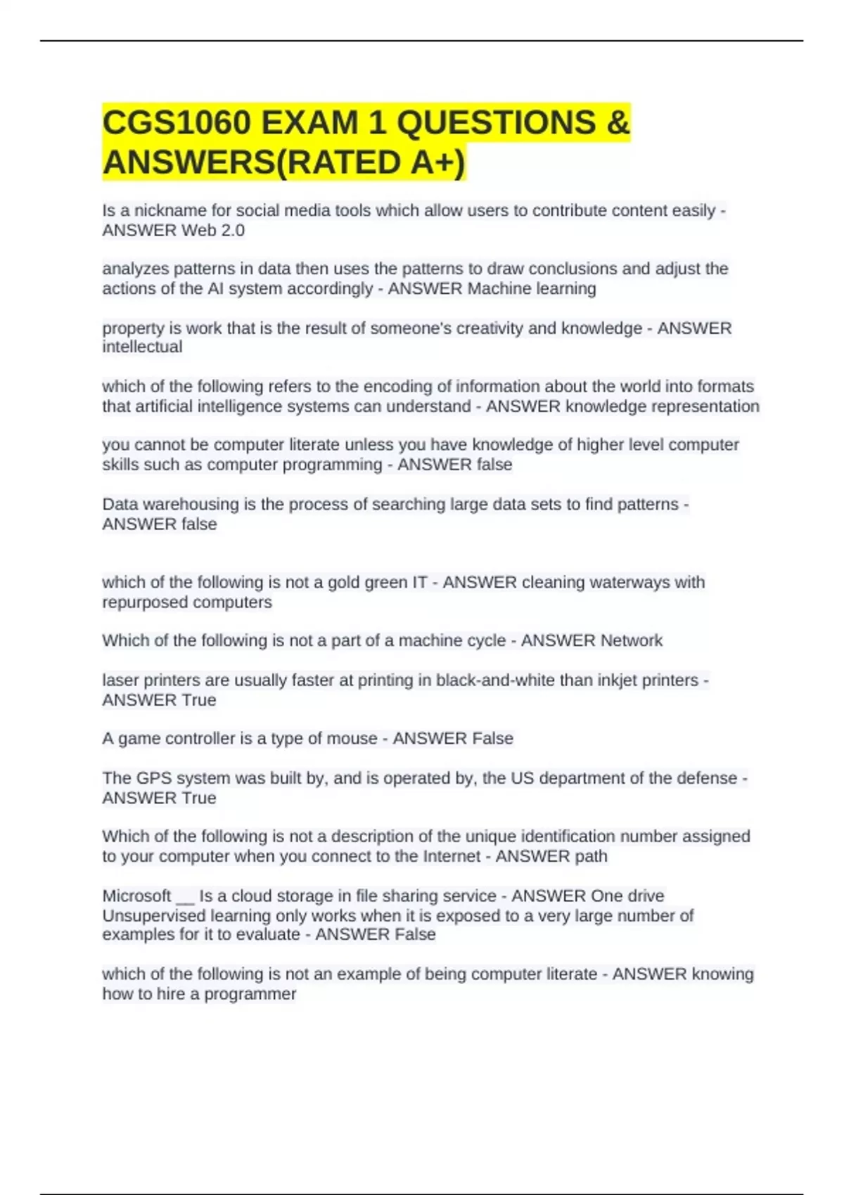 CGS1060 EXAM 1 QUESTIONS & ANSWERS(RATED A+)