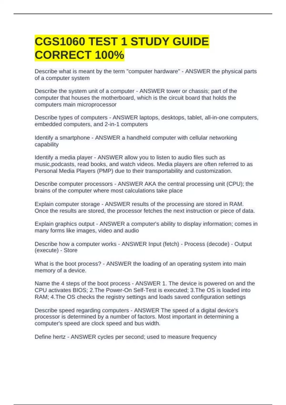 Describe what is meant by the term "computer hardware" - ANSWER the physical parts