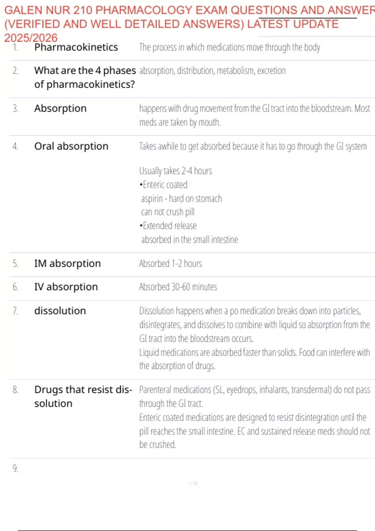 GALEN NUR 210 PHARMACOLOGY EXAM QUESTIONS AND ANSWERS (VERIFIED AND WELL DETAILED ANSWERS) LATEST UPDATE 2025/2026