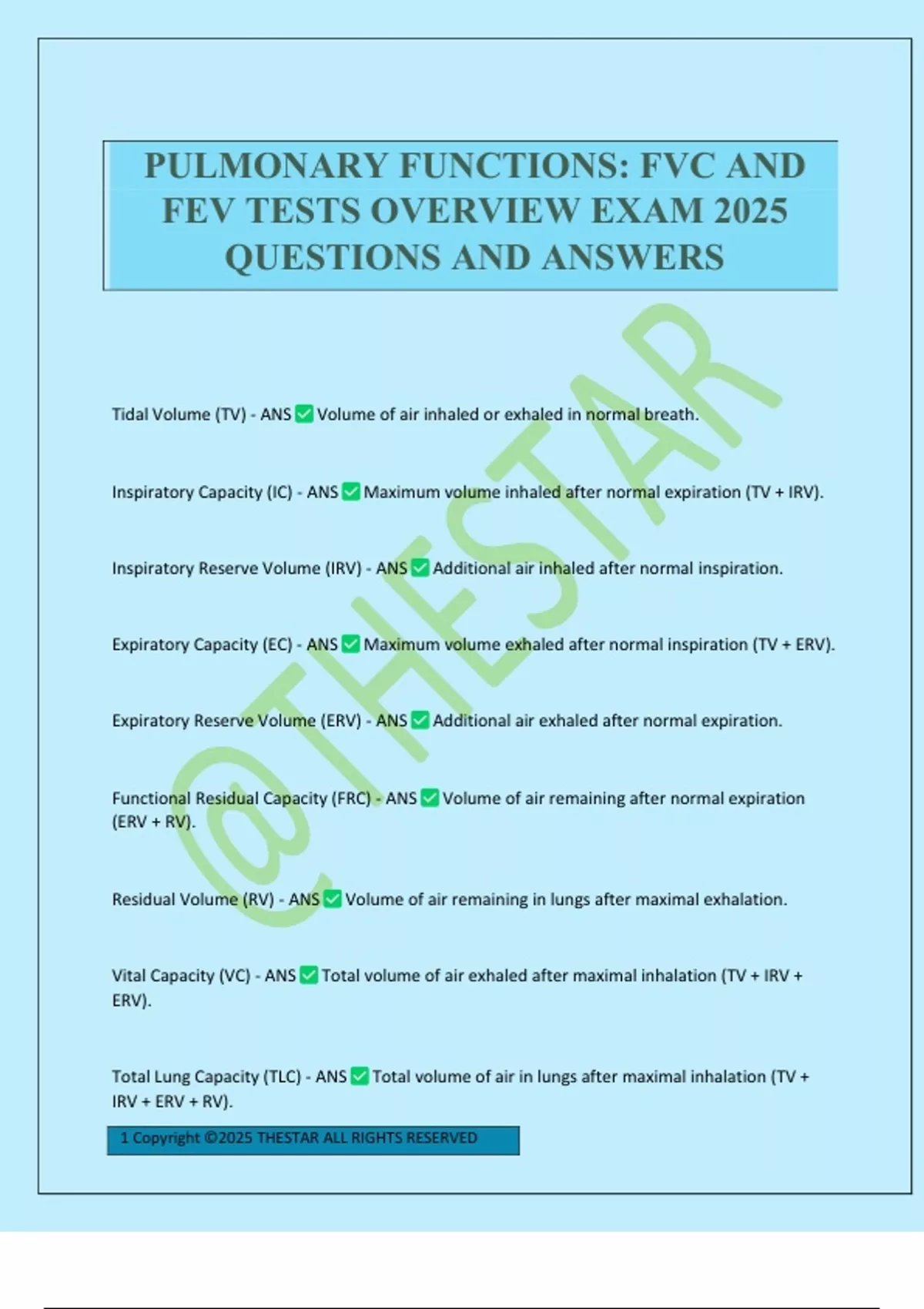 Total Lung Capacity (TLC) - ANS Total volume of air in lungs after maximal inhalation (TV +