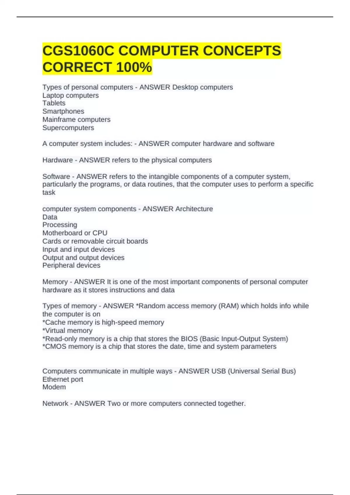 Types of memory - ANSWER *Random access memory (RAM) which holds info while