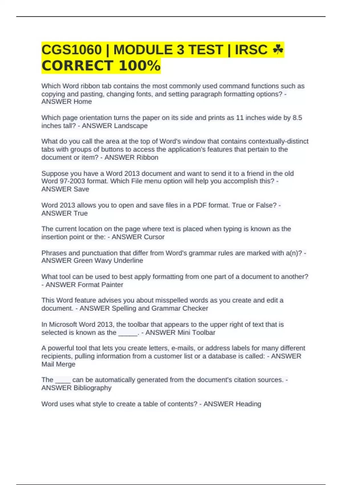 CGS1060 | MODULE 3 TEST | IRSC ☘