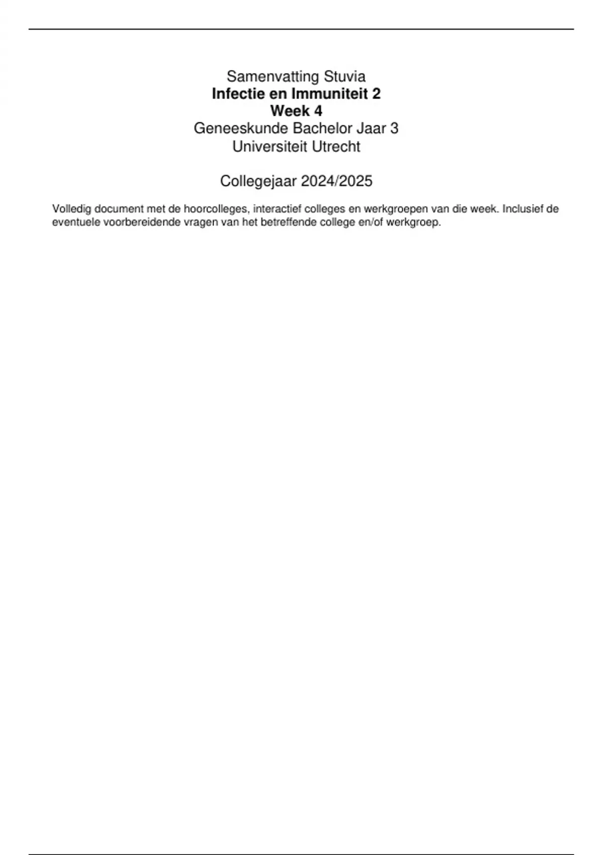 Volledig document met de hoorcolleges, interactief colleges en werkgroepen van die week. Inclusief de