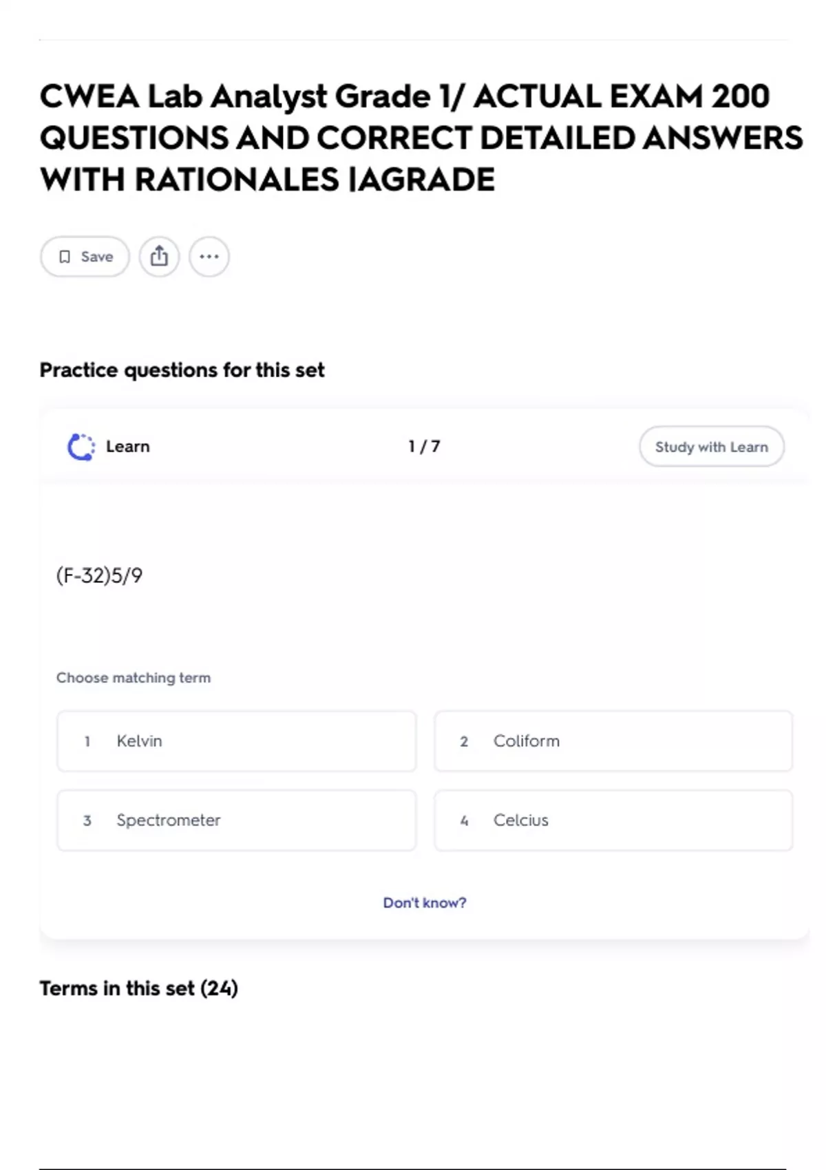 CWEA Lab Analyst Grade 1/ ACTUAL EXAM 200 QUESTIONS AND CORRECT DETAILED ANSWERS WITH RATIONALES |AGRADE