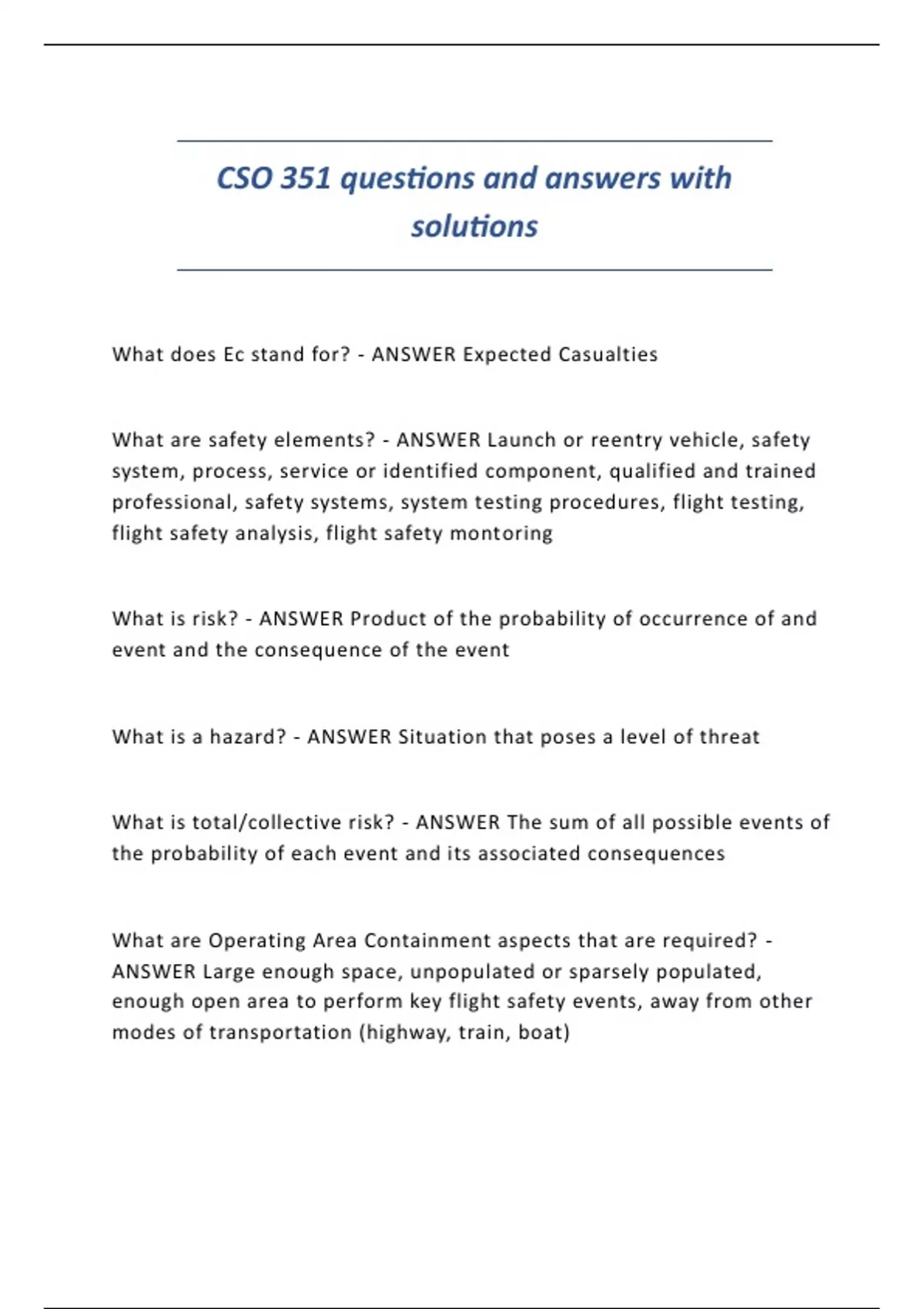 What are safety elements? - ANSWER Launch or reentry vehicle, safety
