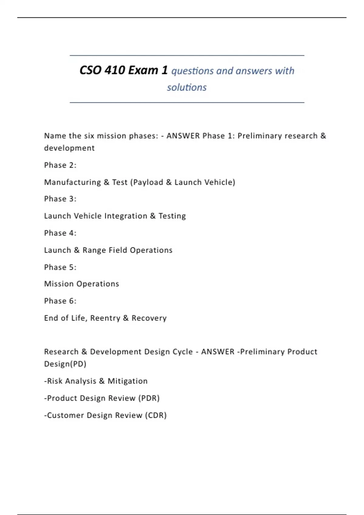 CSO 410 Exam 1 questions and answers with