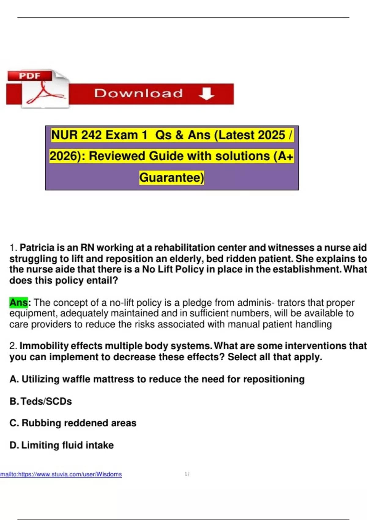 NUR 242 Exam 1 Qs & Ans (Latest 2025 /