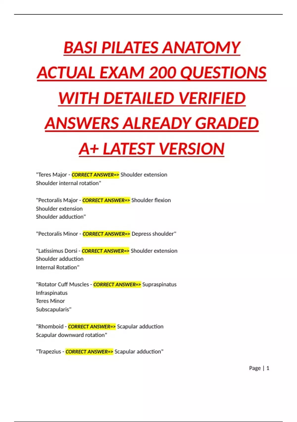BASI PILATES ANATOMY ACTUAL EXAM 200 QUESTIONS WITH DETAILED VERIFIED ANSWERS ALREADY GRADED A+ LATEST VERSION