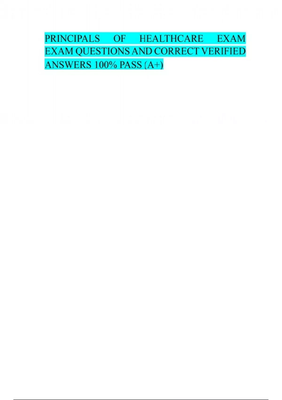 PRINCIPALS OF HEALTHCARE EXAM EXAM QUESTIONS AND CORRECT VERIFIED ANSWERS 100% PASS (A+) Uniforms - Answer Neat, well fitting Wrinkle free Color coded scrubs Clothing - Answer neat clean Appropriate Freedom for movement Name badge - Answer name, title photo Proper location Eye level Shoes - Answer Good support No open toe shoes Clean No mesh material Personal hygiene - Answer Daily bath Good oral hygiene No perfume