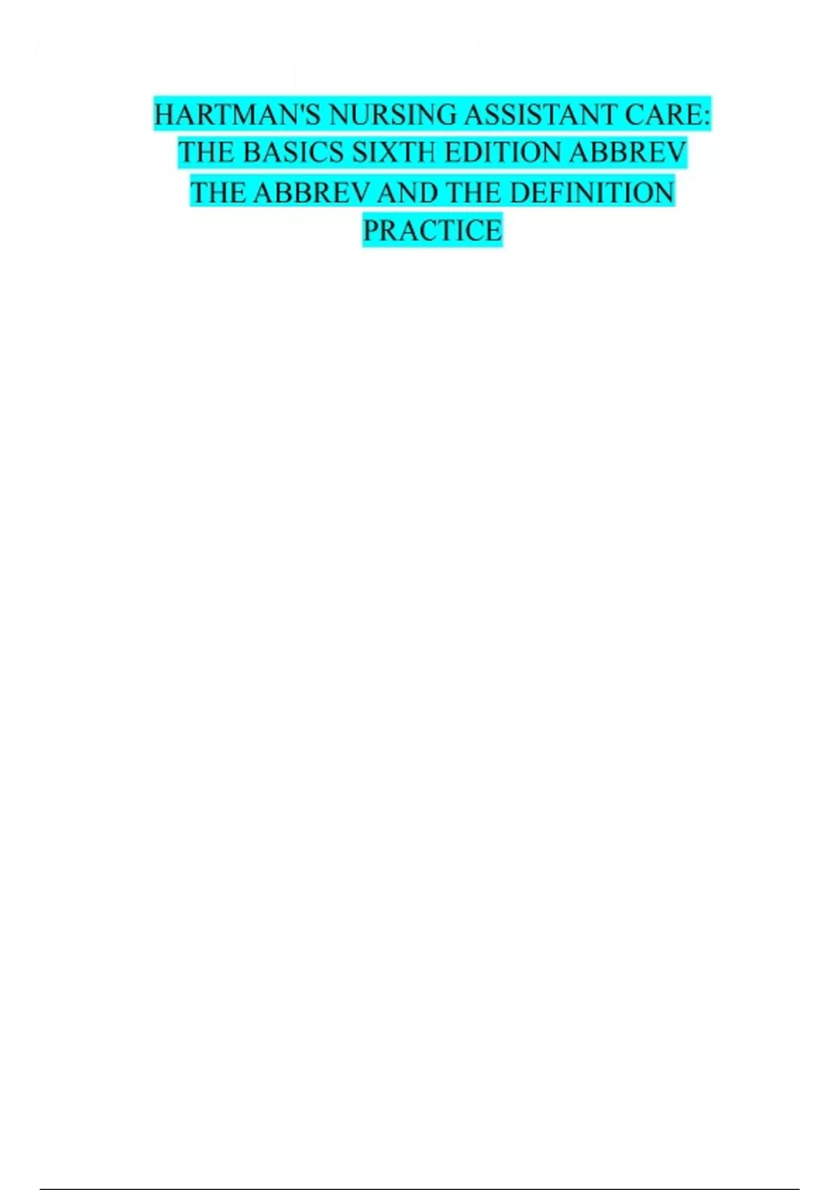 HARTMAN'S NURSING ASSISTANT CARE: THE BASICS SIXTH EDITION ABBREV