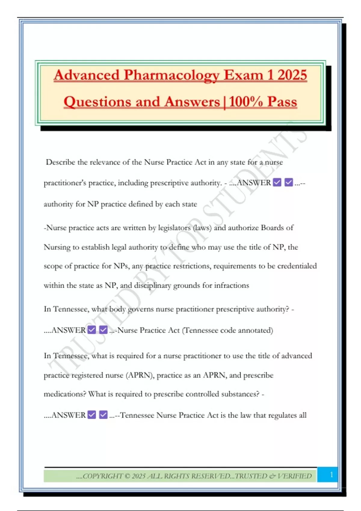 Advanced Pharmacology Exam 1 2025 Questions and Answers|100% Pass