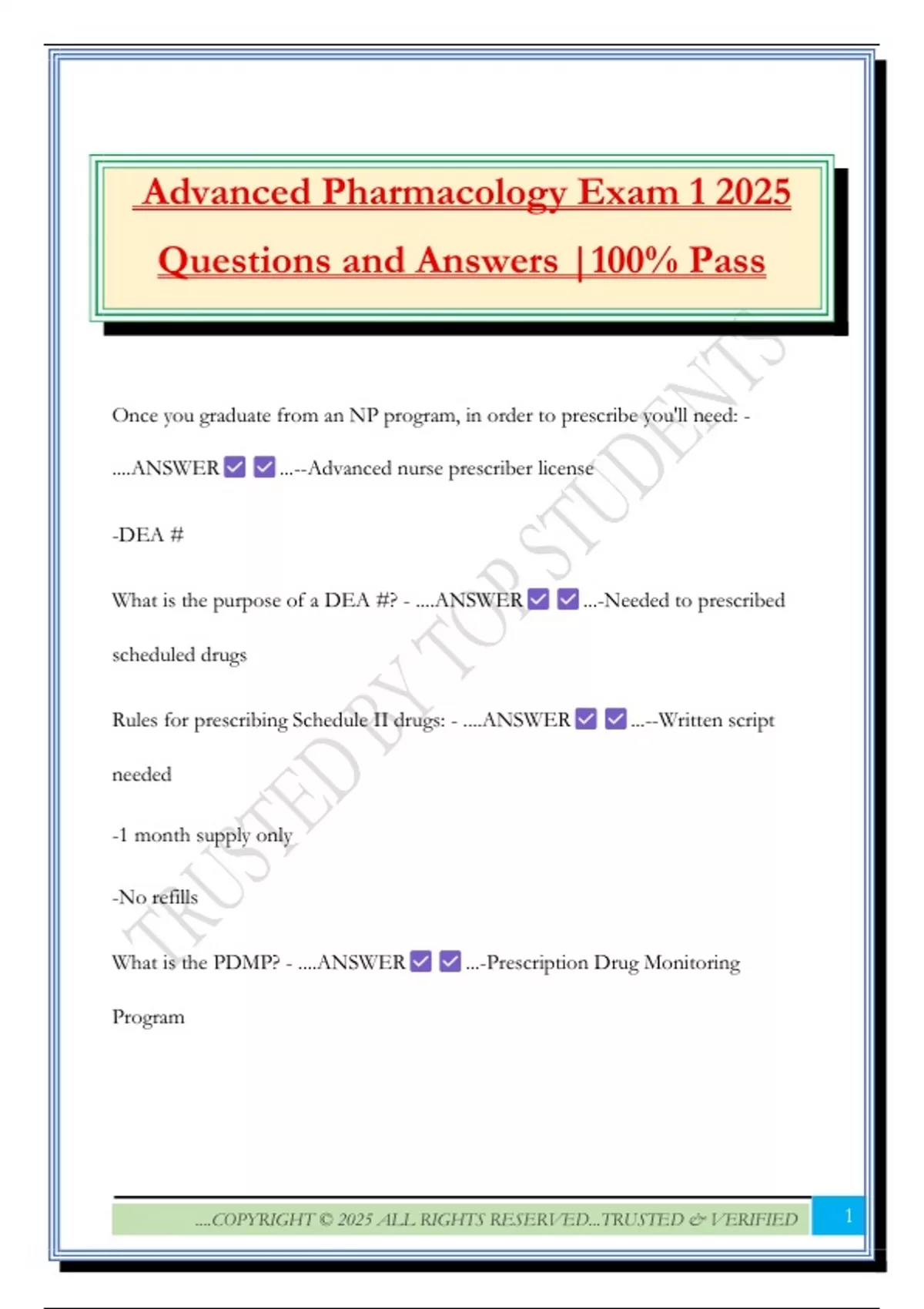 Advanced Pharmacology Exam 1 2025 Questions and Answers |100% Pass