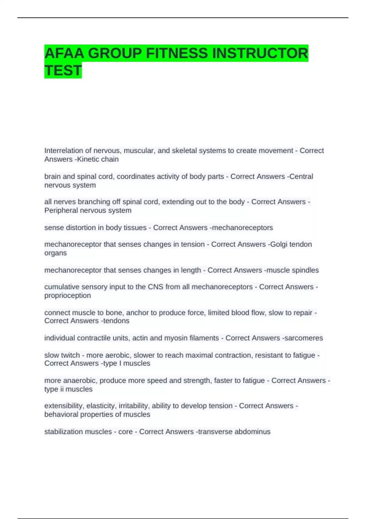 Correct Answers -tendons