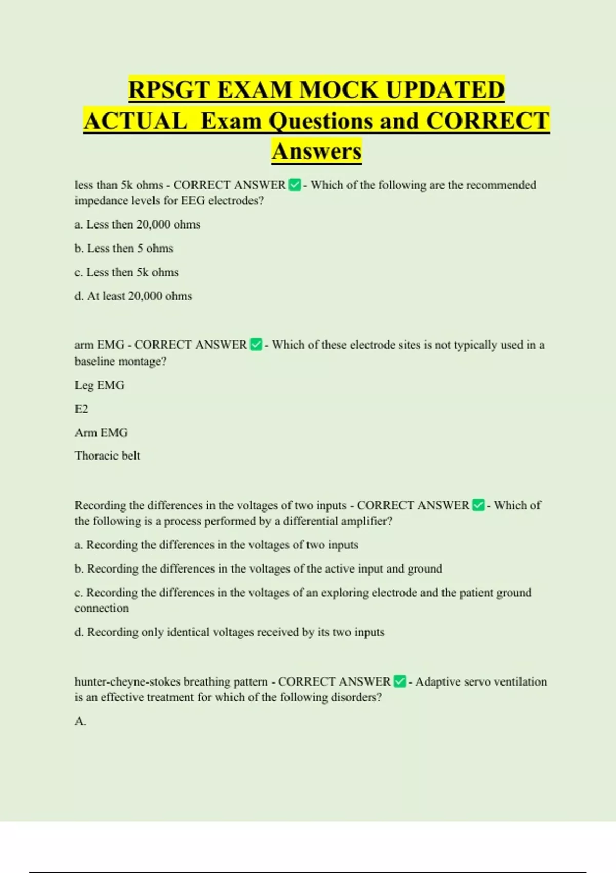 RPSGT EXAM MOCK UPDATED ACTUAL Exam Questions and CORRECT Answers