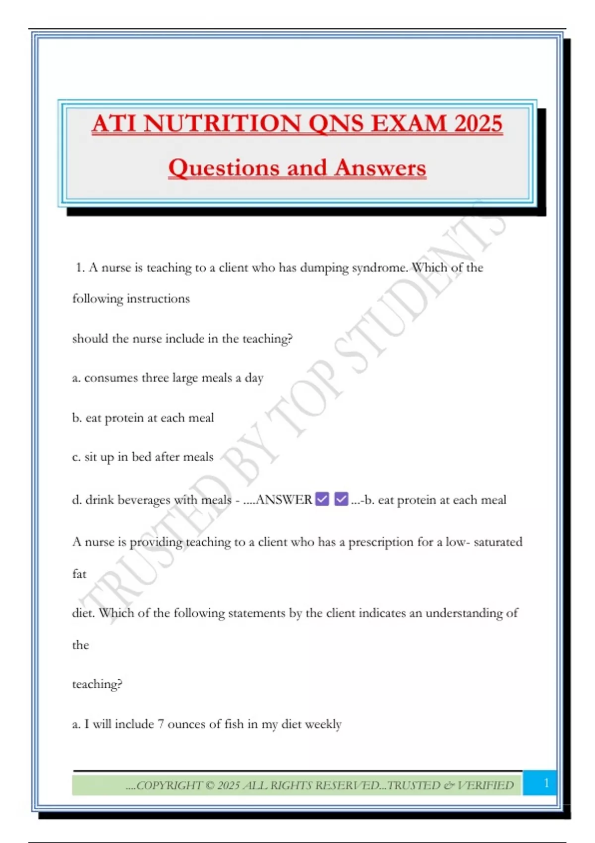 1. A nurse is teaching to a client who has dumping syndrome. Which of the