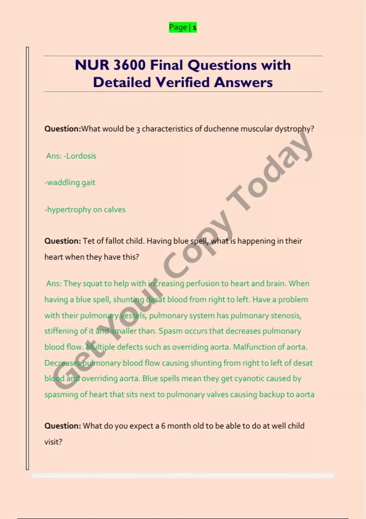 NUR 3600 Final Questions with