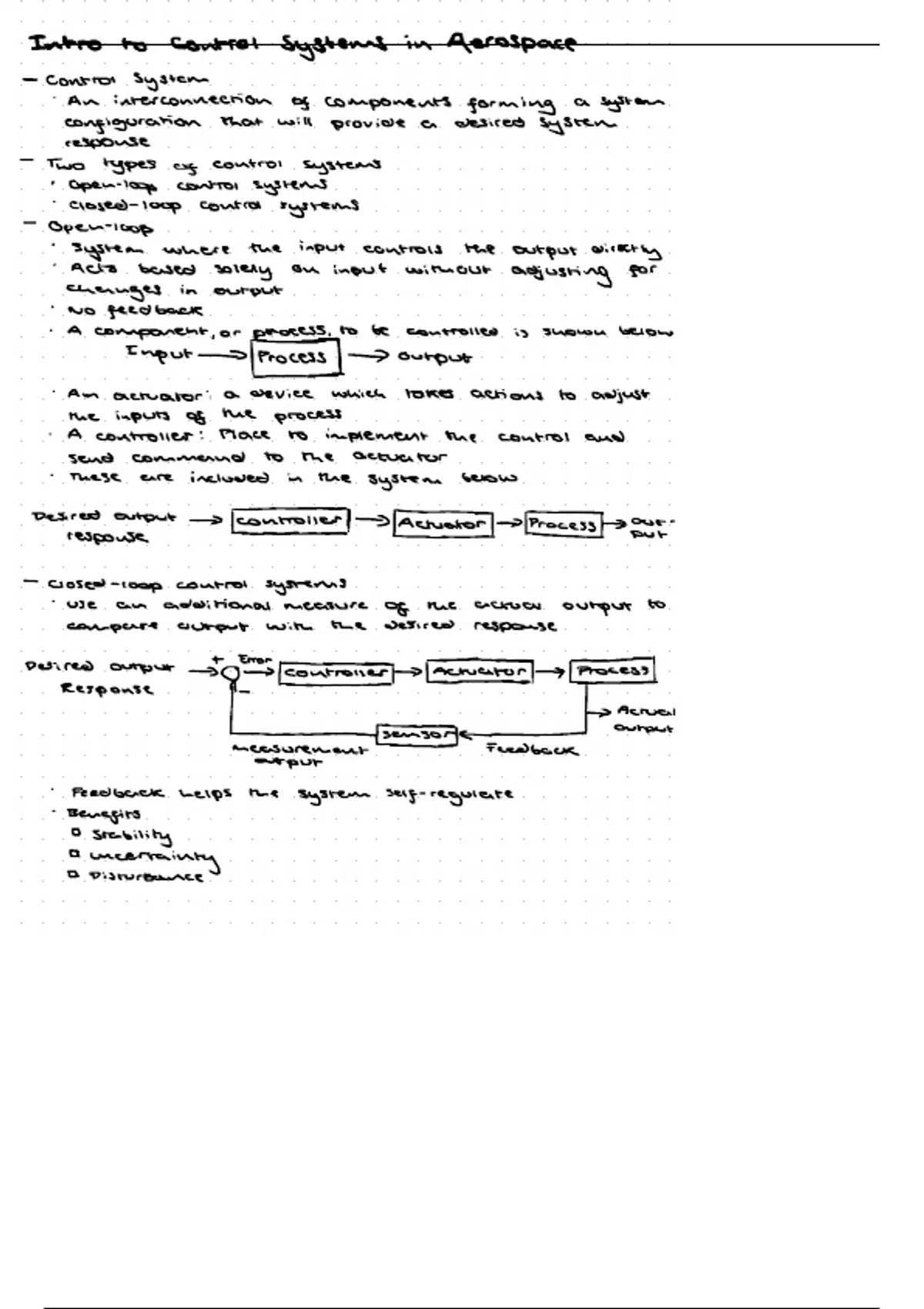 Lecture notes from the introduction lecture to control systems in aerospace. Covers: control systems; and types of control systems.