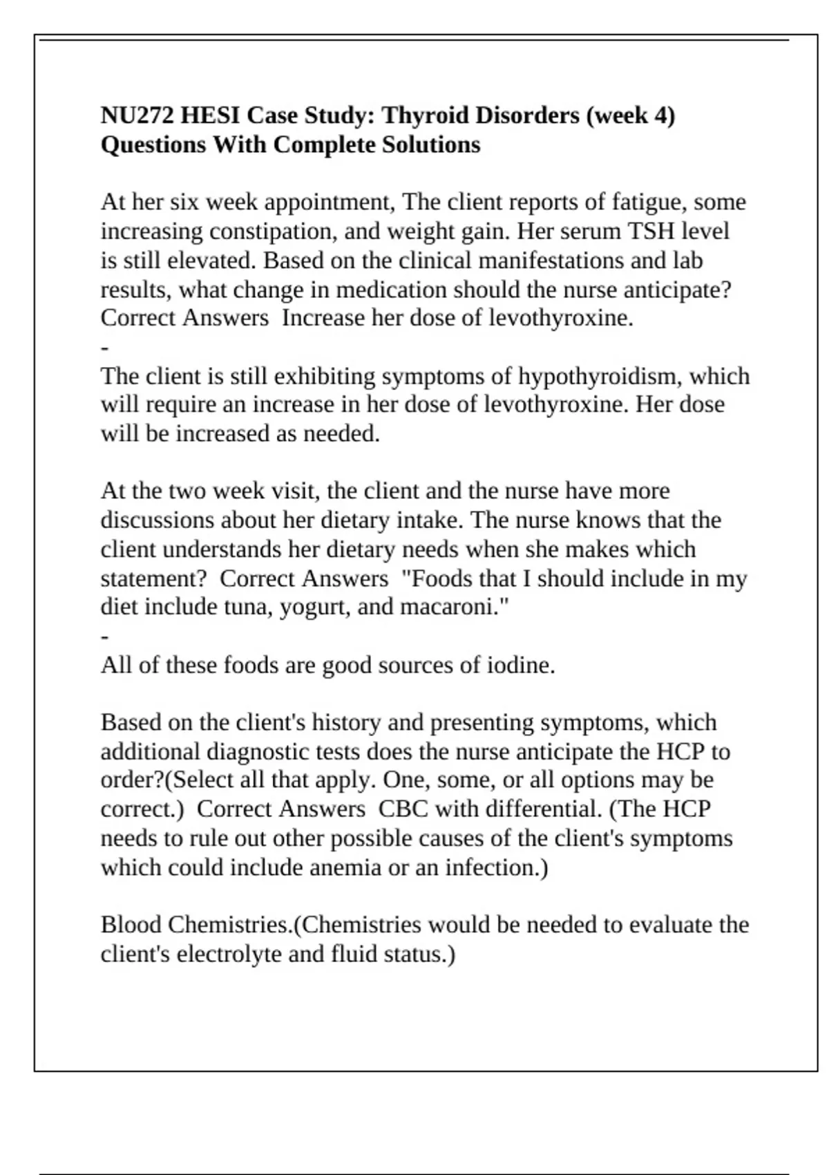 NU272 HESI Case Study: Thyroid Disorders (week 4) Questions With Complete Solutions