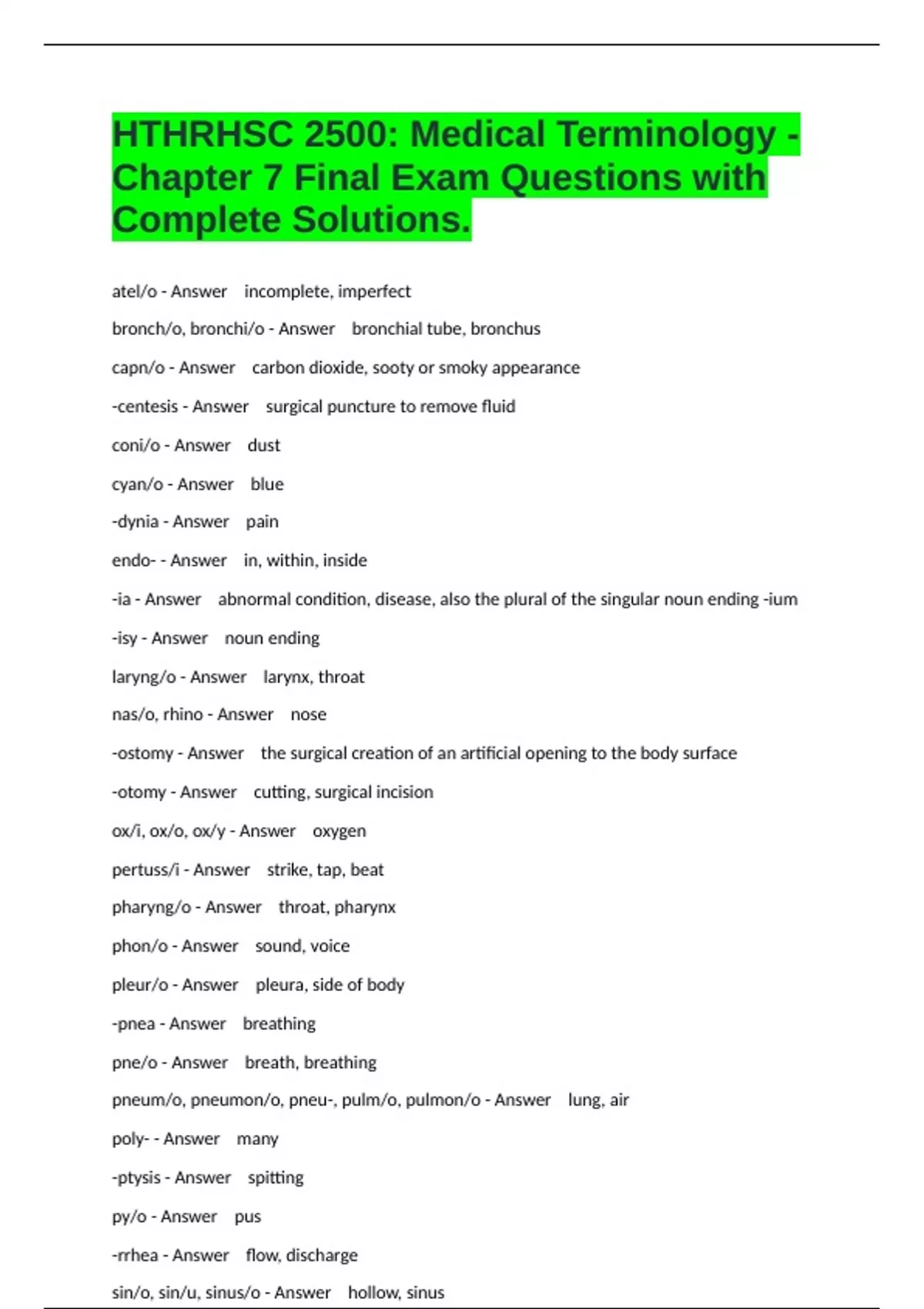 HTHRHSC 2500: Medical Terminology - Chapter 7 Final Exam Questions with Complete Solutions.