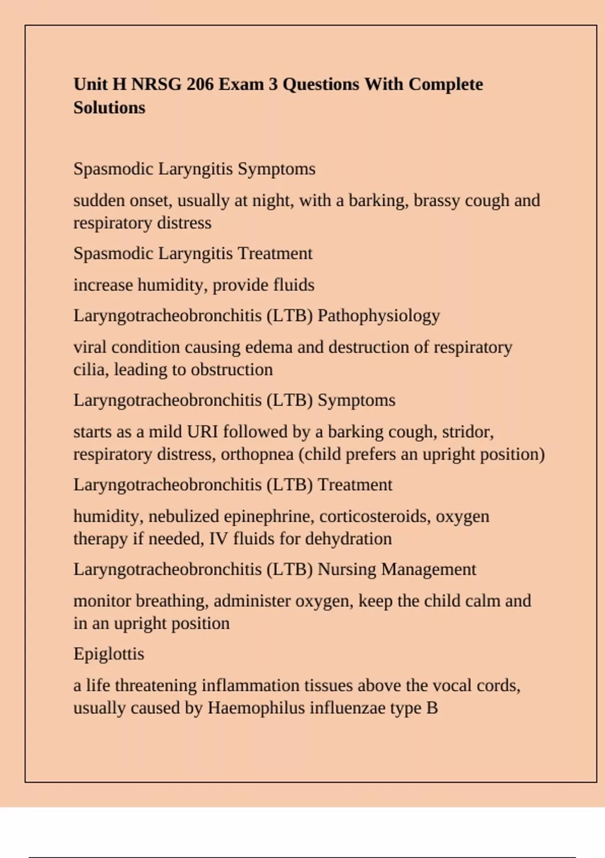 Laryngotracheobronchitis (LTB) Nursing Management