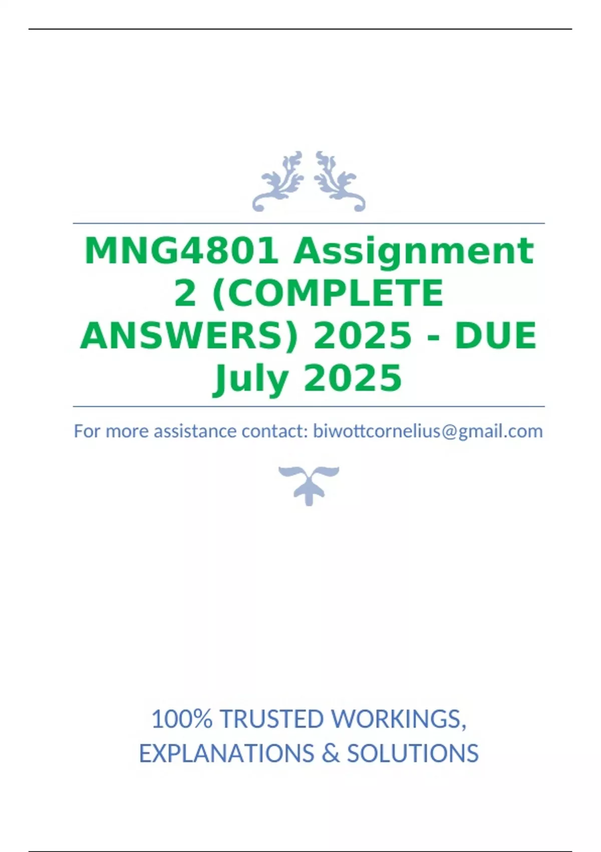MNG4801 Assignment 2 (COMPLETE ANSWERS) 2025 - DUE July 2025