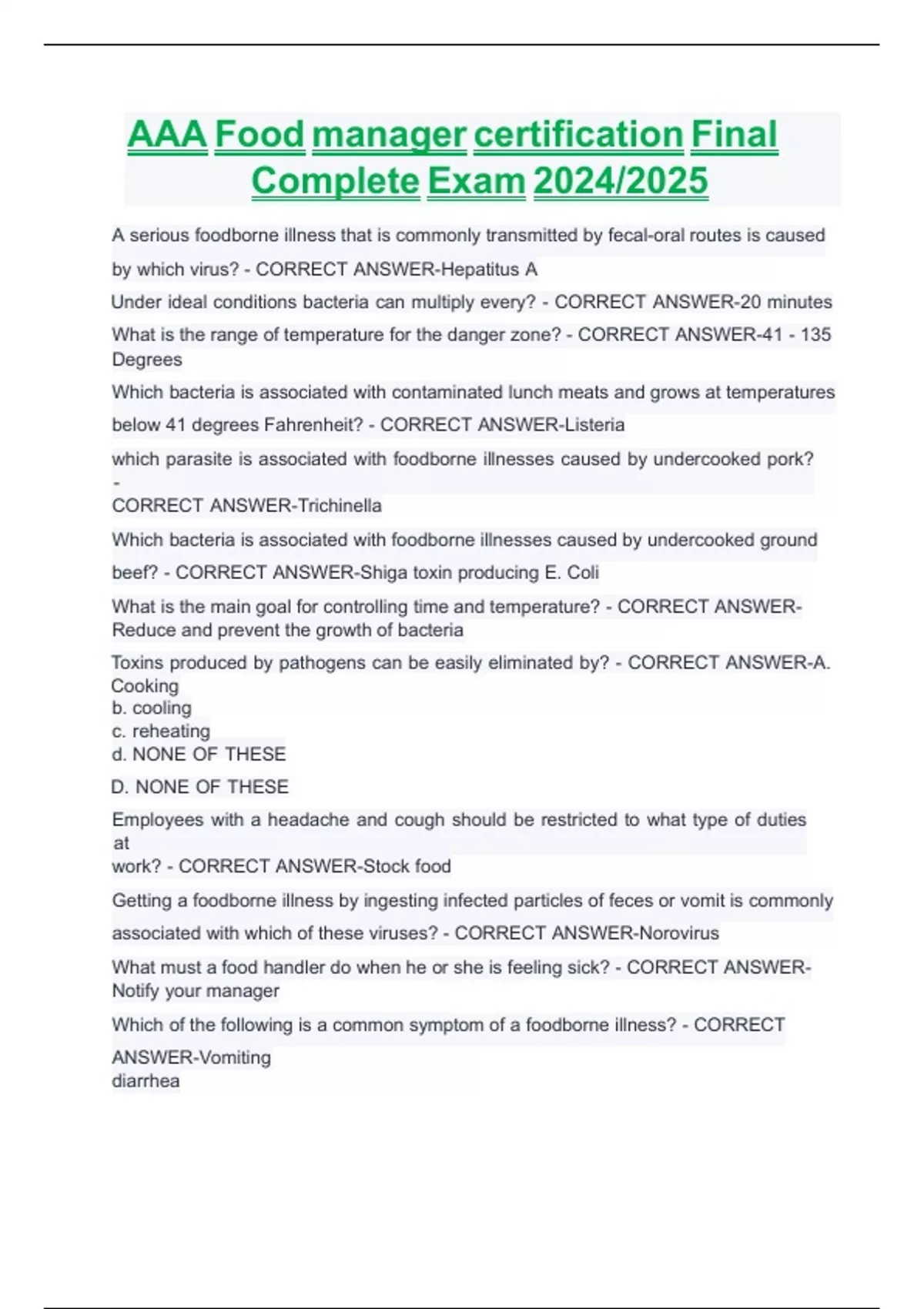AAA Food manager certification Final Complete Exam 2024/2025 AAA Food manager certification Final Complete Exam 2024/2025 AAA Food manager certification Final Complete Exam 2024/2025 AAA Food manager certification Final Complete Exam 2024/2025 AAA Food manager certification Final Complete Exam 2024/2025 AAA Food manager certification Final Complete Exam 2024/2025 AAA Food manager certification Final Complete Exam 2024/2025