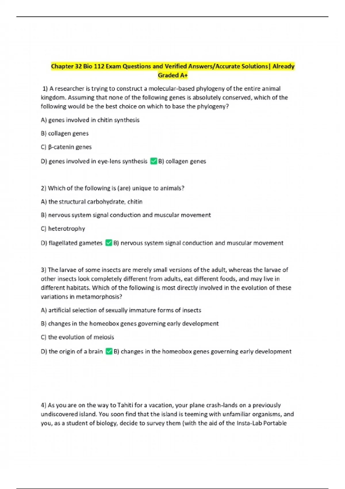 Chapter 32 Bio 112 Exam Questions and Verified Answers/Accurate Solutions| Already Graded A+